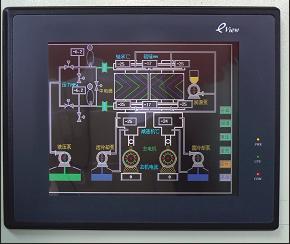 G120-45輥壓機(jī)是中型輥壓機(jī),主機(jī)系統(tǒng)構(gòu)成由機(jī)械工藝要求提出檢測點和控制點設(shè)計了新型自動控制設(shè)備,簡稱自控設(shè)備。自控設(shè)備采用深圳人機(jī)EVIEW系列工業(yè)彩色觸摸屏(見圖一),操作人員直接在觸摸屏上進(jìn)行各運行參數(shù)設(shè)定:監(jiān)測點各瞬時數(shù)據(jù)的顯示:在彩色屏上可以監(jiān)察管道流量,機(jī)械運動以不同色彩的動態(tài)圖形:本系統(tǒng)保護(hù)功能動作,會自動彈出“窗口”指明故障原因。